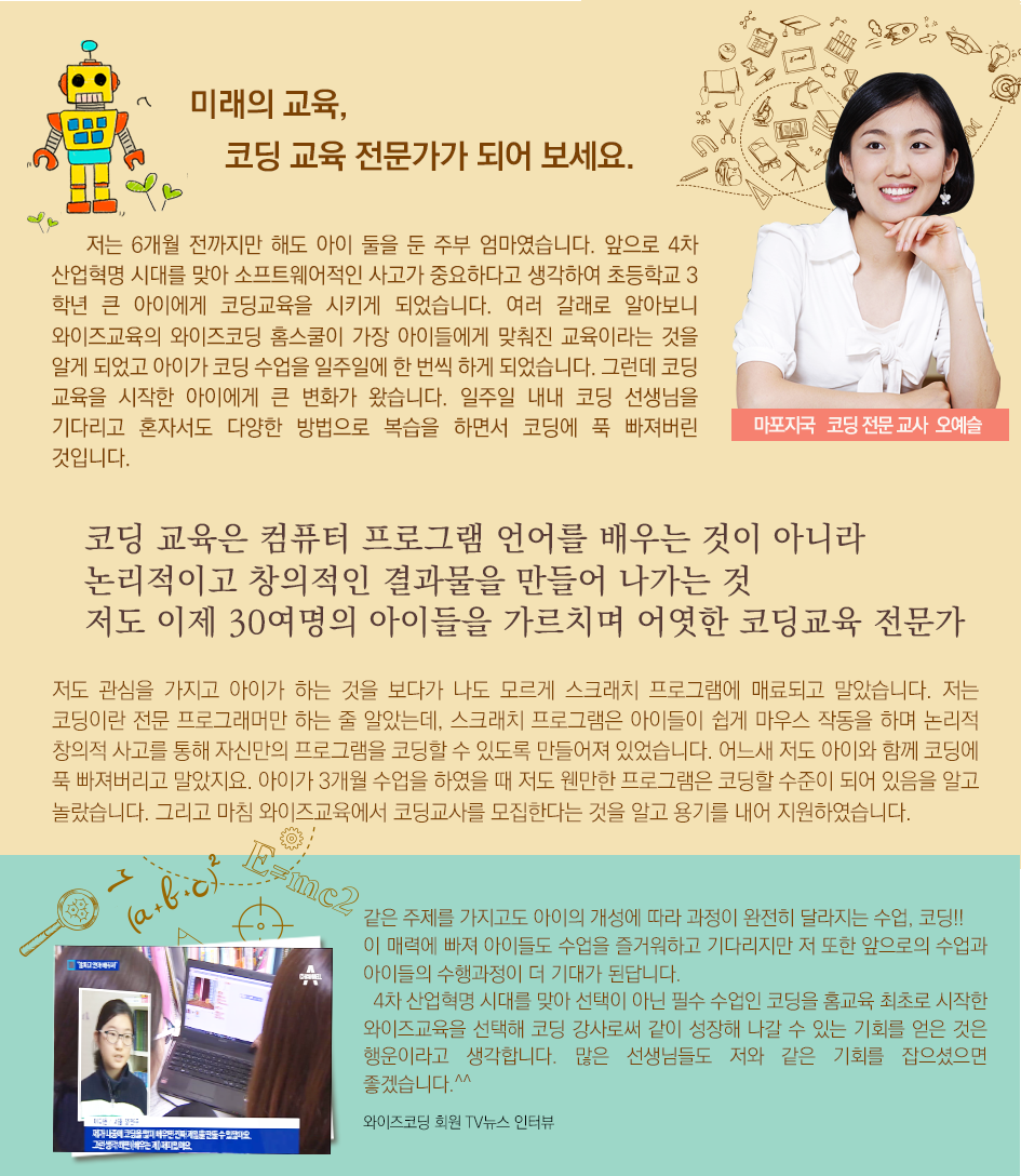 ¢ß¿ÍÀÌÁî±³À°Àº ±³À°»ó´ãÀ» À§ÇØ ¾Æ·¡¿Í °°ÀÌ °³ÀÎÁ¤º¸¸¦ ¼öÁýÀÌ¿ëÇÕ´Ï´Ù. ¼öÁýµÈ °³ÀÎÁ¤º¸´Â ±³À°»ó´ã ¿Ü ¸ñÀûÀ¸·Î »ç¿ëÇÏÁö ¾Ê½À´Ï´Ù. 1. °³ÀÎÁ¤º¸ ¼öÁý¡¤ÀÌ¿ë µ¿ÀÇ ¡Ü¸ñÀû : ¼ºñ½º üÇè ¹× Á¦Ç° »ó´ã ¡ÜÇ׸ñ : ¼º¸í, ºñ°í(Çгâ), ÀüȹøÈ£, ÁÖ¼Ò / ±³»çÁö¿ø : ¼º¸í, ³ªÀÌ, ÀüȹøÈ£, ÁÖ¼Ò ¡Üº¸À¯ ¹× ÀÌ¿ë ±â°£ : ¼öÁý ÈÄ 1³â(±âŸ, ȸ»ç³»ºÎ±ÔÁ¤ °³ÀÎÁ¤º¸ ó¸® ¹æÄ§¿¡ µû¸§) 2. ¸¸ 14¼¼ ¹Ì¸¸ ¾Æµ¿ÀÇ °³ÀÎÁ¤º¸ ¼öÁý¿¡ ´ëÇÑ ¹ýÁ¤´ë¸®ÀÎ µ¿ÀÇ °³ÀÎÁ¤º¸º¸È£¹ý Á¦ 22Á¶¿¡ µû¶ó ȸ»ç´Â ¸¸ 14¼¼ ¹Ì¸¸ ¾Æµ¿ÀÇ °³ÀÎÁ¤º¸ 󸮸¦ À§ÇÏ¿© ¹ýÁ¤´ë¸®ÀÎÀÇ µ¿ÀǸ¦ ¼öÁýÇϰí ÀÖ½À´Ï´Ù. ÀÌ¿¡ ¹ýÁ¤´ë¸®ÀÎÀÎ º»ÀÎÀº ¾Æ·¡¿Í °°ÀÌ È¸»ç°¡ ¸¸ 14¼¼ ¹Ì¸¸ º»ÀÎ ÀÚ³àÀÇ °³ÀÎÁ¤º¸¸¦ ¼öÁý¡¤ÀÌ¿ëÇÏ´Â °Í¿¡ µ¿ÀǸ¦ ¹ÞÀº °ÍÀ¸·Î °£ÁÖÇÕ´Ï´Ù. ¡Ø ±ÍÇÏ´Â ±³À°»ó´ã À̿뿡 ÇÊ¿äÇÑ ÃÖ¼ÒÇÑÀÇ °³ÀÎÁ¤º¸ ¼öÁý¡¤À̿뿡 µ¿ÀÇÇÏÁö ¾ÊÀ» ±Ç¸®°¡ ÀÖÀ¸¸ç, µ¿ÀÇ °ÅºÎ ½Ã ¼ºñ½º°¡ Á¦Çѵ˴ϴÙ. ¡Ü¸ñÀû : ¼ºñ½º üÇè ¹× Á¦Ç° »ó´ã ¡ÜÇ׸ñ : ¼º¸í, Çгâ / ±³»çÁö¿ø: ¼º¸í, ³ªÀÌ, ÀüȹøÈ£, ÁÖ¼Ò ¡Üº¸À¯ ¹× ÀÌ¿ë ±â°£ : ¼öÁý ÈÄ 1³â(±âŸ, ȸ»ç³»ºÎ±ÔÁ¤ °³ÀÎÁ¤º¸ ó¸® ¹æÄ§¿¡ µû¸§) 3. °³ÀÎÁ¤º¸ÀÇ Á¦3ÀÚ Á¦°ø ÁÖ½Äȸ»ç ¿ÍÀÌÁî±³À° Á÷¿µ ±³»ç ¡Ü¸ñÀû : ¼ºñ½º¿¡ ´ëÇÑ »ó´ã ÀÇ»ç È®ÀÎ ¹× ±³À° »ó´ã ¡ÜÇ׸ñ: ¼º¸í, Çгâ, ÀüȹøÈ£, ÁÖ¼Ò /±³»çÁö¿ø;¼º¸í, ³ªÀÌ, ÀüȹøÈ£, ÁÖ¼Ò ¡Üº¸À¯ ¹× ÀÌ¿ë ±â°£ : ¼öÁý ÈÄ 1³â(±âŸ, ȸ»ç³»ºÎ±ÔÁ¤ °³ÀÎÁ¤º¸ ó¸® ¹æÄ§¿¡ µû¸§) º»ÀÎ ¹× ÀÚ³àÀÇ °³ÀÎÁ¤º¸ ¼öÁý¡¤ÀÌ¿ë µ¿ÀǸ¦ °ÅºÎÇÏ½Ç ±Ç¸®°¡ ÀÖÀ¸¸ç, ¹Ìµ¿Àǽà ¼ºñ½º üÇè ¹× Á¦Ç° »ó´ãÀÌ Á¦ÇÑµÉ ¼ö ÀÖ½À´Ï´Ù. ¢Ñ °í°´ÀÇ °³ÀÎÁ¤º¸ 󸮿¡ ´ëÇÑ ÀÚ¼¼ÇÑ ³»¿ëÀº ´ç»ç ȨÆäÀÌÁö ³» °³ÀÎÁ¤º¸ 󸮹æÄ§À» Âü°íÇϽñ⠹ٶø´Ï´Ù.